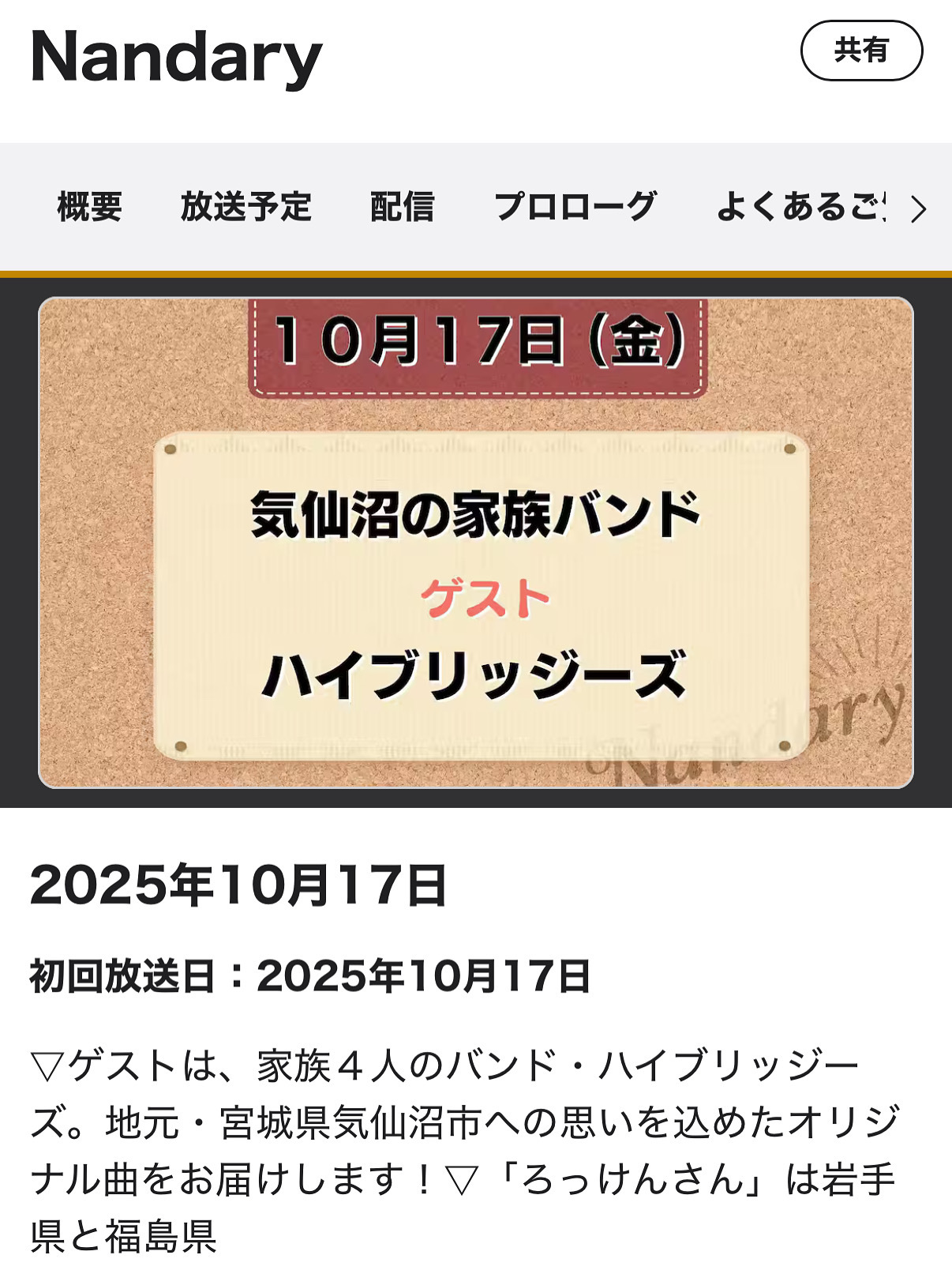 10月17日17:00~ NHKラジオ第1で放送されます「Nandary(ナンダリー)」にハイブリッジーズ4人で生出演致します! バンド活動や新曲の事、今後の事などワイワイとおしゃべりしてまいります! 是非ともお聴き下さいませ!